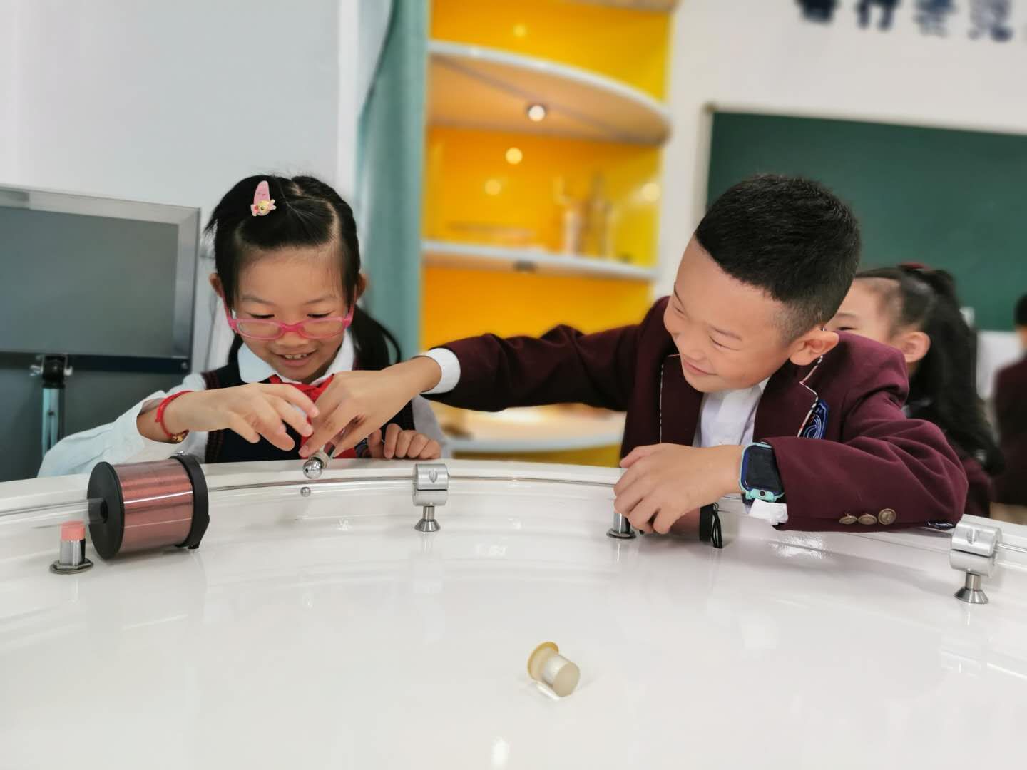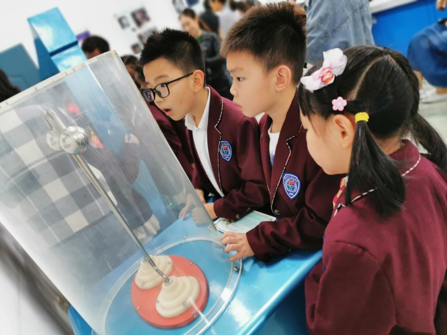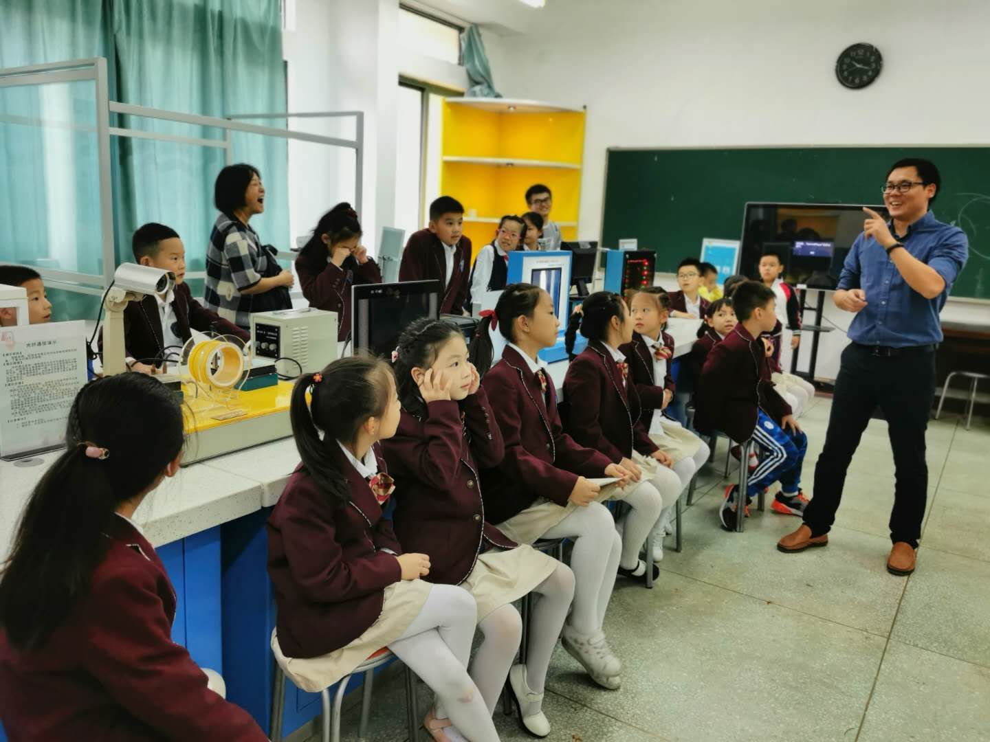 为弘扬科学精神,普及科学知识,9月20日,理学院物理教研室党支部利用演示实验室开展了对外科普教育公益活动。演示实验室的老师带领南师附小高新校区的学生们先后参观体验了“最速降线”、“能量守恒”、“模拟龙卷风”、“怒放冲冠”等演示实验项目,并指导小朋友亲自动手串联简单电路等物理小实验。在灯泡点亮的瞬间,小朋友们收获了实验成功的喜悦,感受了物理科学的魅力。今后,理学院物理教研室党支部将进一步做好教育科普资源的开发与共享,传播科学思想和科学方法,为提高全民科学素质发挥积极的推动作用。